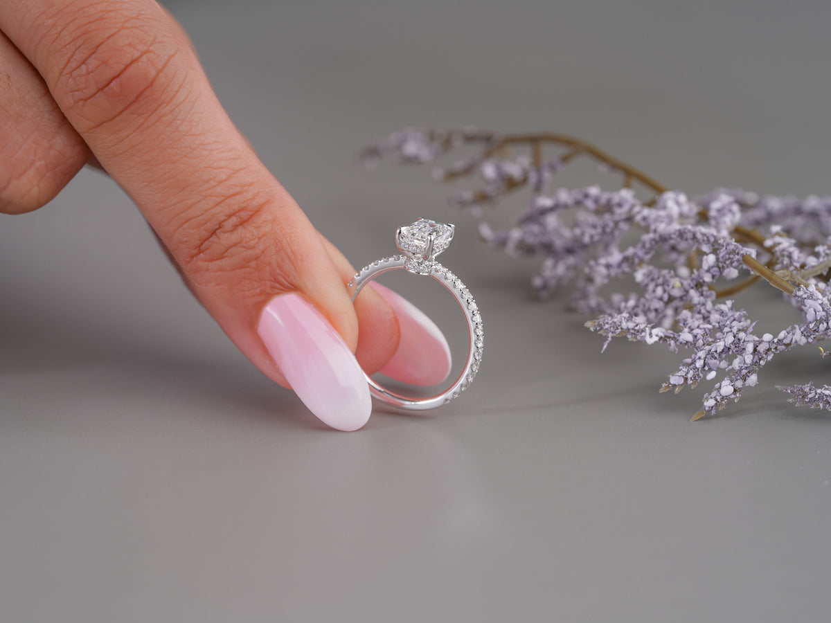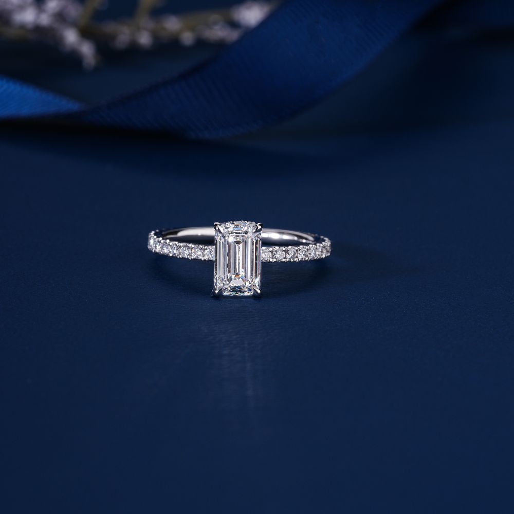 A perfect blend of ethical luxury and refined taste, showcasing a breathtaking Emerald center stone in a classic diamond-accented setting.