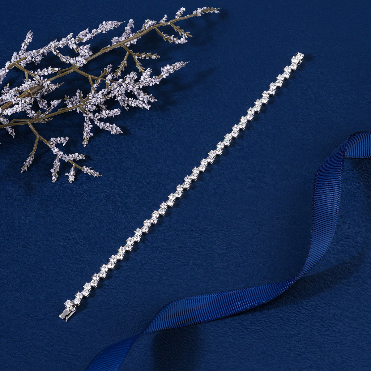 To maintain the intense fire of your 3mm diamonds, clean gently with warm water, mild soap, and a soft-bristle brush. The staggered setting has more facets to catch the light, so regular cleaning is recommended to keep your "Luna Path" glowing at its peak.