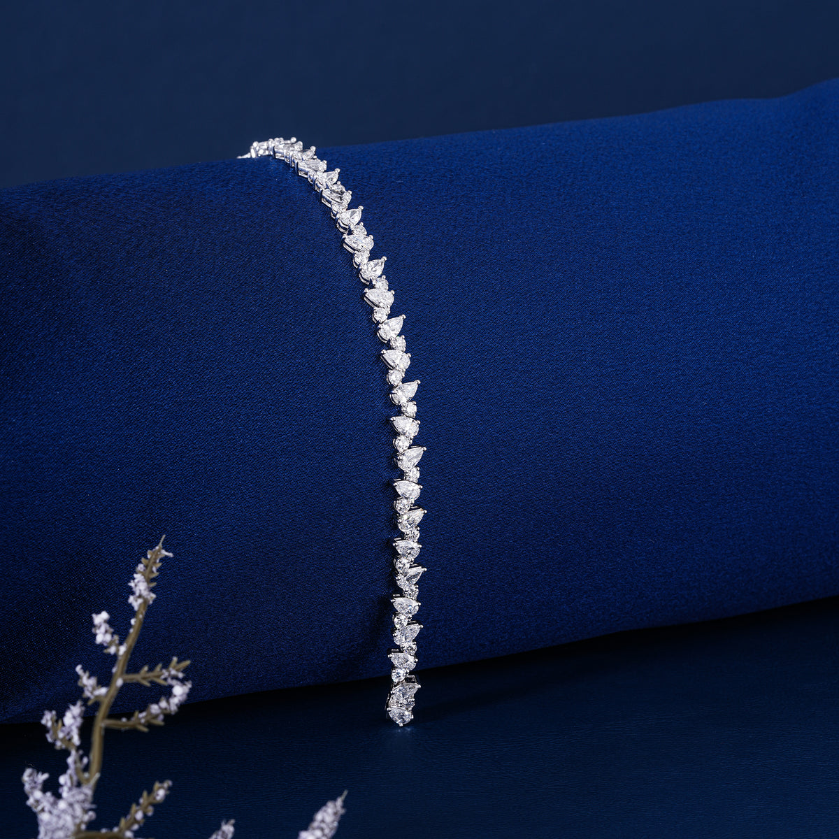 Mark your milestone with the "Celestial Drop" Bracelet—a breathtaking departure from the traditional tennis design. Designed to symbolize the rhythm of a beautiful journey, this piece features a sophisticated mixed-cut pattern that alternates the classic, intense fire of Round Brilliant diamonds with the romantic, elongated elegance of Pear Shape diamonds. With a total of 7.68 Carats, it is the ultimate Anniversary Present for the modern woman.