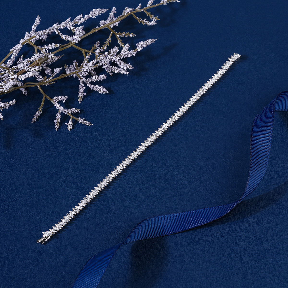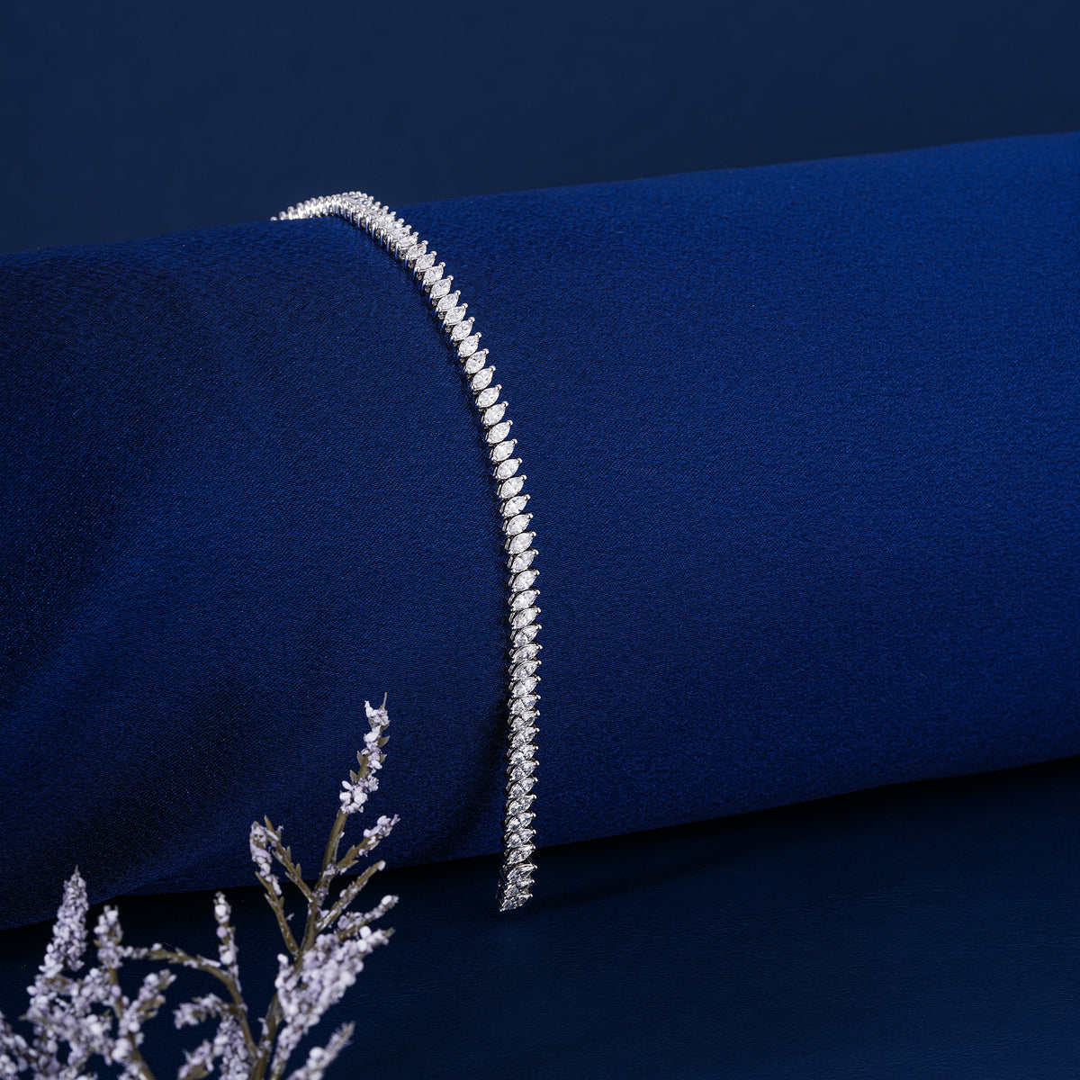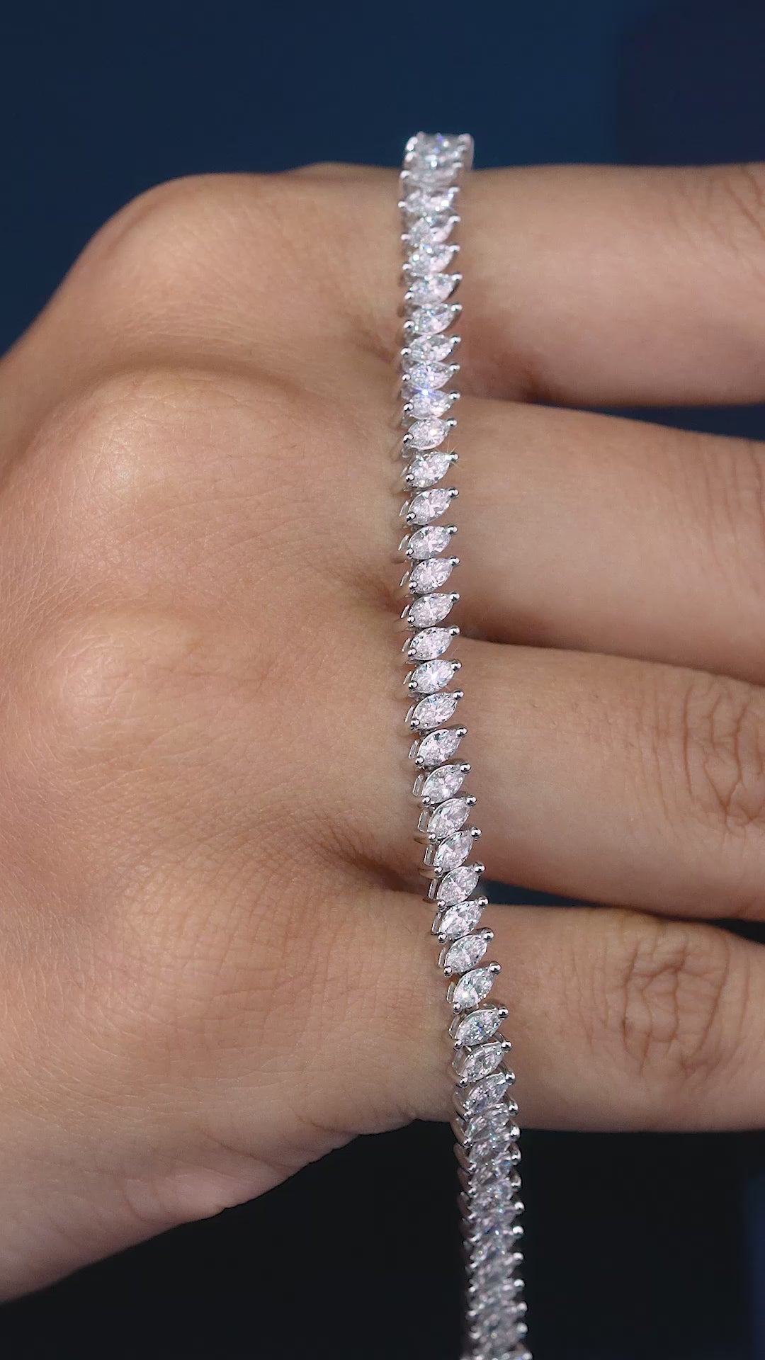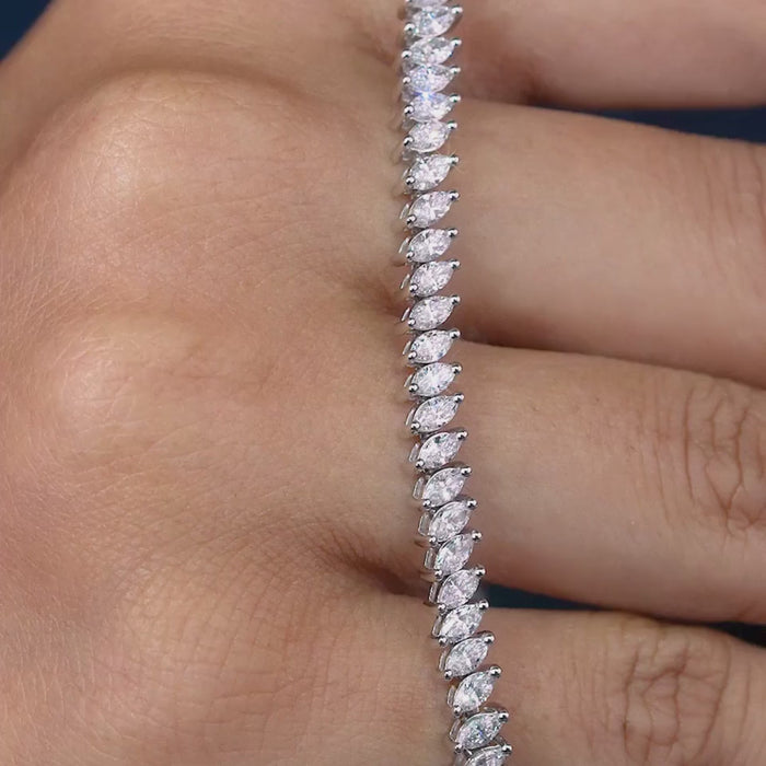 Style: Slanted Tennis / Marquise Leaf Pattern Line Bracelet