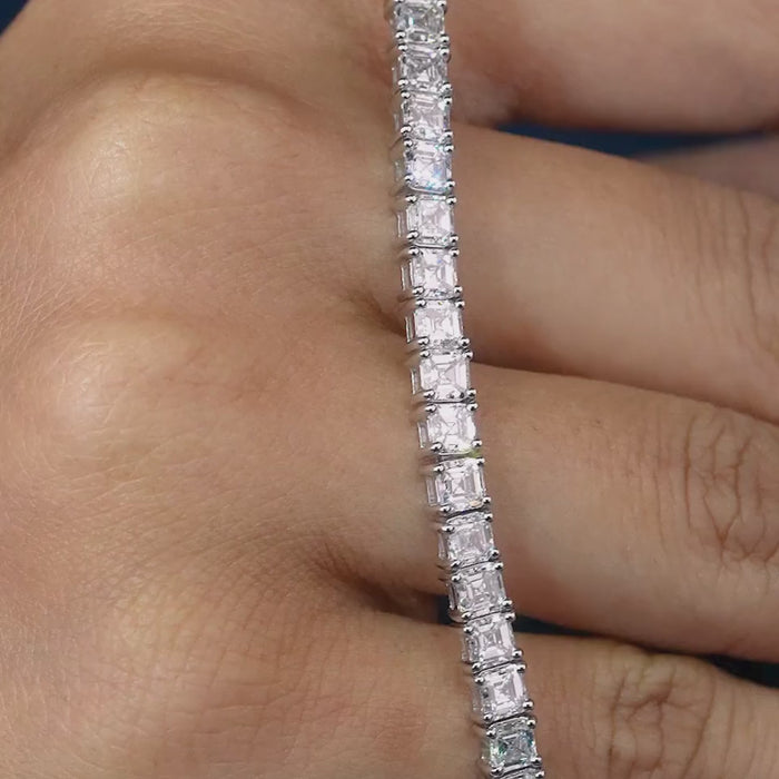 Vintage 12.50 Carat Lab Grown Tennis Bracelet Asscher Step Cut Statement Jewelry