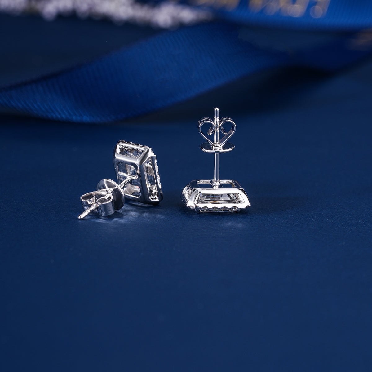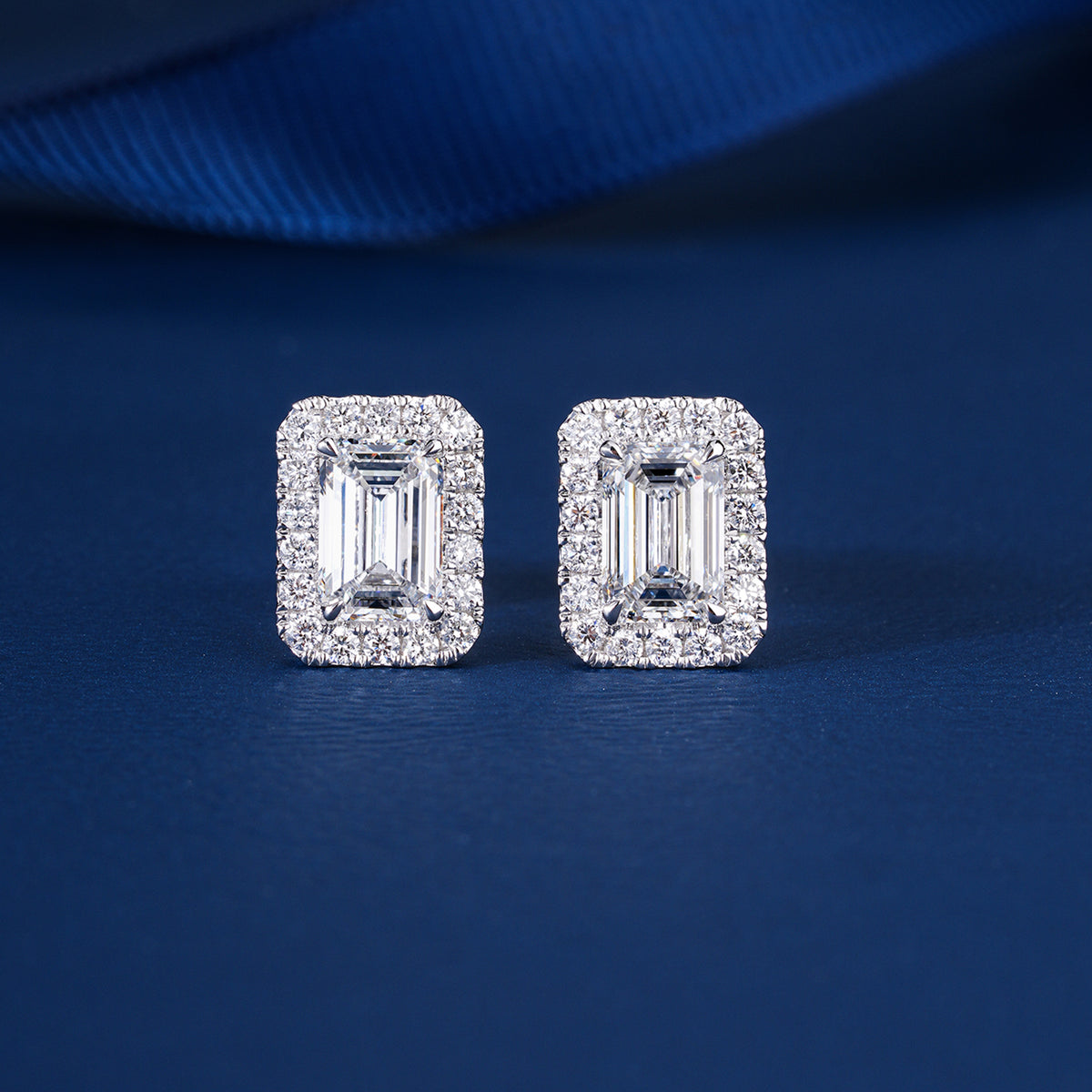 A perfect blend of ethical luxury and refined taste, showcasing breathtaking Emerald-Shape center stones in a classic diamond-accented setting. Designed for those who appreciate timeless brilliance and sustainable elegance.