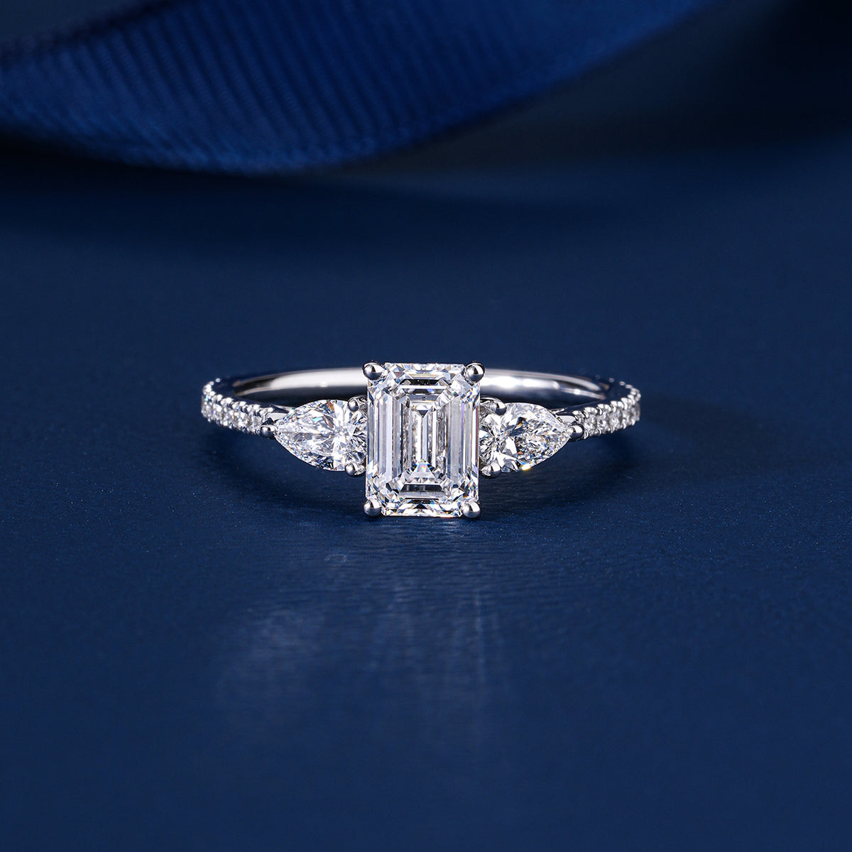A perfect blend of ethical luxury and refined taste, showcasing a breathtaking Emerald center stone in a classic diamond-accented setting.