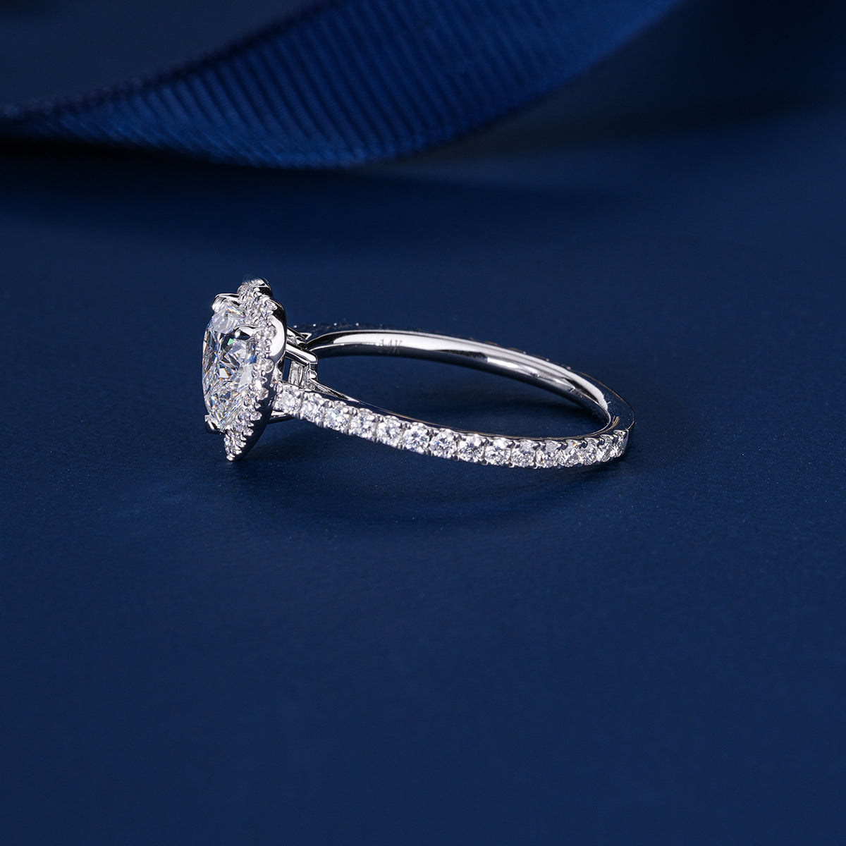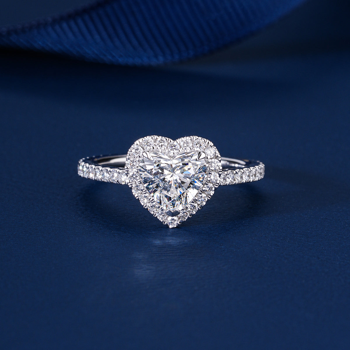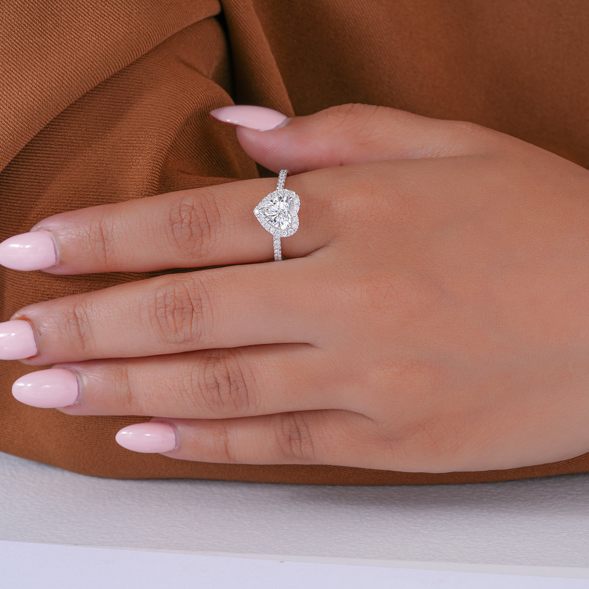 A perfect blend of ethical luxury and refined taste, showcasing a breathtaking Heart center stone in a classic diamond-accented setting.
