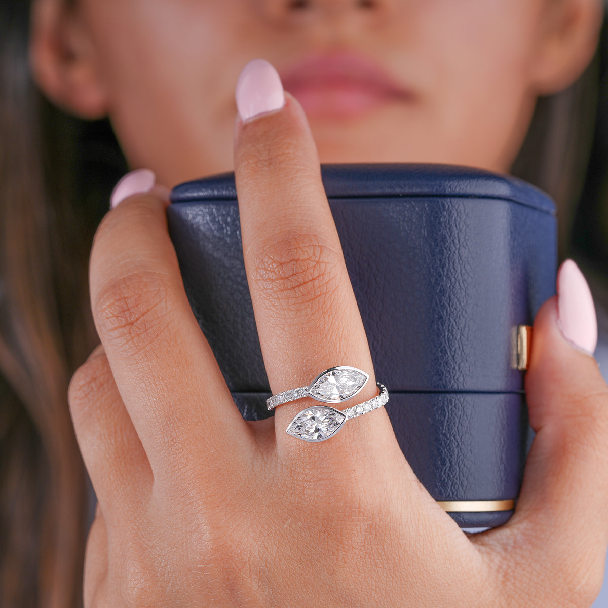 A perfect blend of ethical luxury and refined taste, showcasing a breathtaking Marquise center stone in a classic diamond-accented setting.