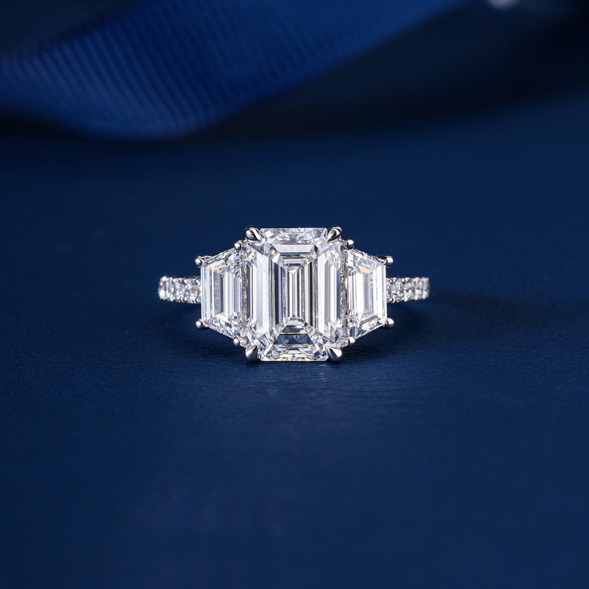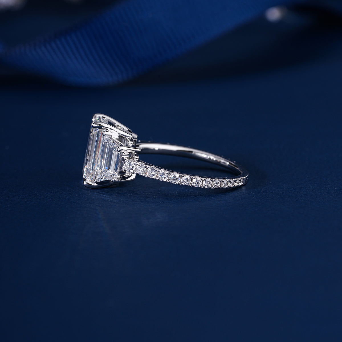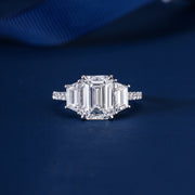 3.0 CT IGI Certified Emerald Cut Diamond Three Stone Engagement Ring